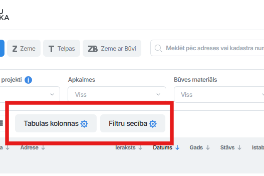 Tā kā katram no lietotājiem ir sava pieeja objektu meklēšanā, tad izveidojām iespēju, kas ļauj sakārtot filtrus sev ērtā secībā. Citiem vārdiem, tagad ir iespējams filtrus, kurus regulāri lieto novietot rindas sākumā, bet reti lietotos - aizcelt uz beigām.Lai to izdarītu, ir nepieciešams nospiest uz jaunās pogas "Filtru secība", kas atrodas starp filtru joslu un tabulu ar datiem. To atverot, ir iespējams redzēt visus filtru nosaukumus, kā arī to, kurās kategorijās konkrētie filtri ir redzami (DZ - dzīvoklis, Z- Zeme, T - telpa, ZB - zeme ar/bez būves). Katra nosaukuma kreisajā pusē ir trīs horizontālas svītriņas, uz kurām var nospiest ar peli un pārvietot filtra nosaukumu uz augšu vai uz apakšu. Izveidojot sarakstu ar vēlamo secību, ir jānospiež poga "Saglabāt". Filtru secība nomainīsies un saglabāsies tik ilgi, kamēr paši neizdomāsiet to samainīt.Jāņem vērā, ka ir filtri, kas parādās visās 4 kategorijās (piemēram, "Objekta informācija"), attiecīgi, nav iespējams vienā kategorijā šādu filtru iestatīt pirmo, bet citā - pēdējo. Taču ir iespējams, pirms pogas "Filtru secība" nospiešanas, aktivizēt visas 4 kategorijas un sakārtot visus filtrus vienlaicīgi.